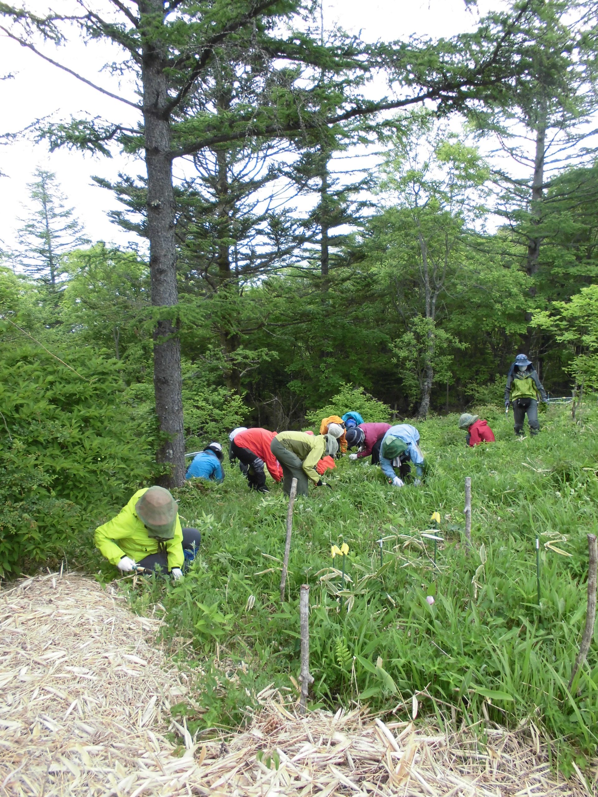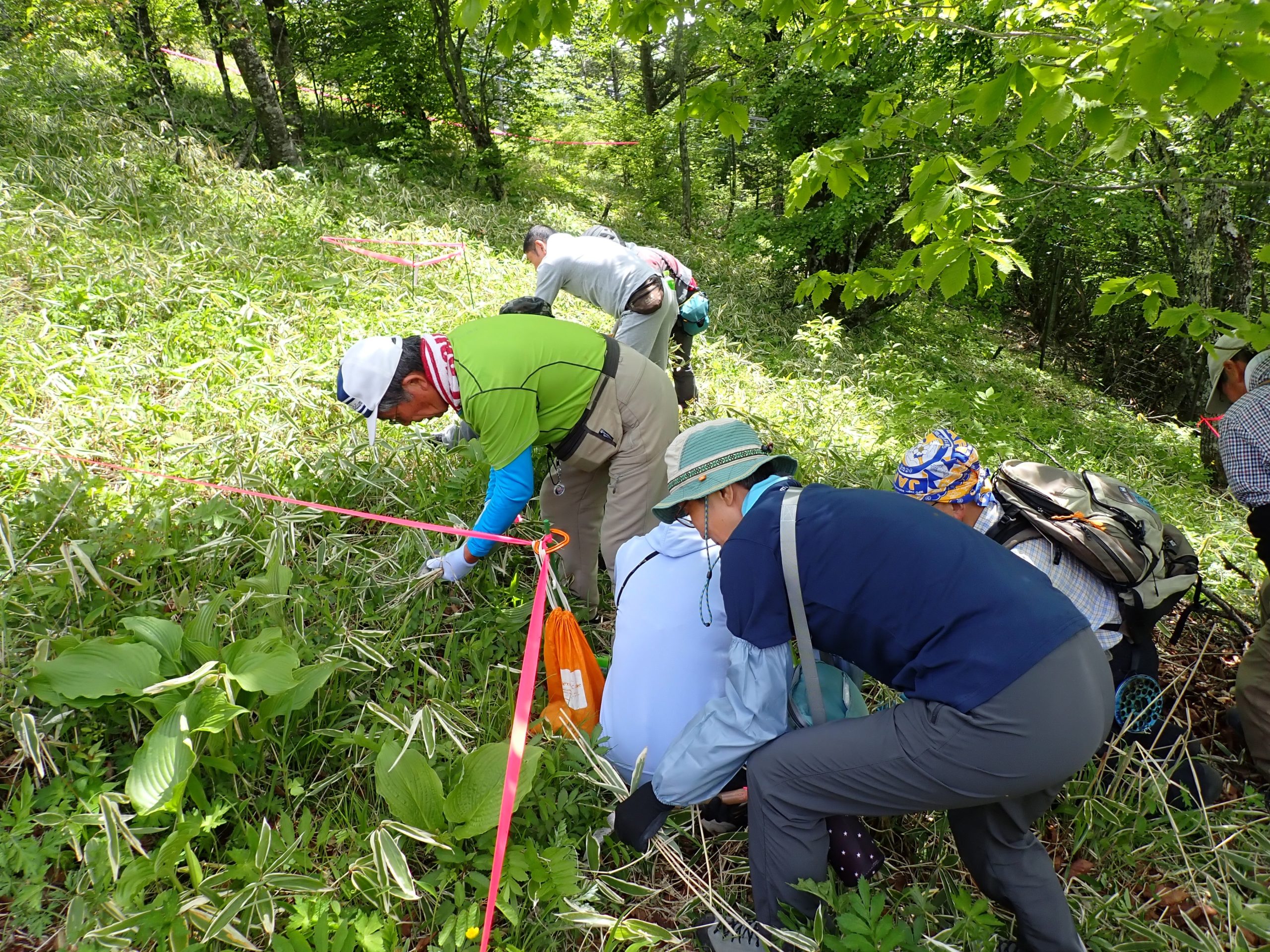 月例会では主に防鹿柵内でのササやテンニンソウの刈り取りや抜き取り作業を実施していきます。