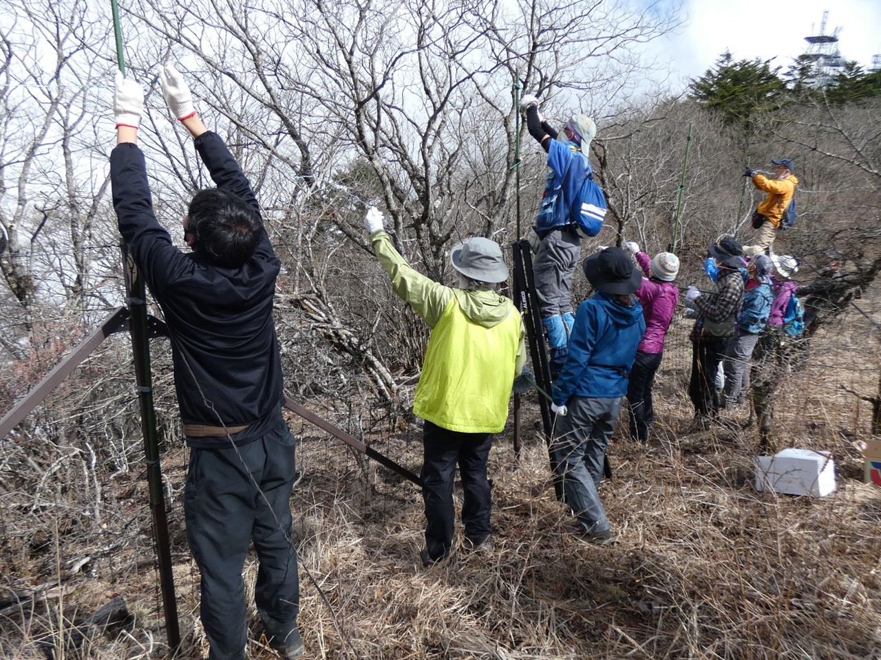 月例会作業とは別に、外部委託によるニホンジカの駆除事業・盗掘等のパトロールや防鹿柵のメンテンナンス等の日々の活動も三ツ峠山荘を拠点に行っていきます。